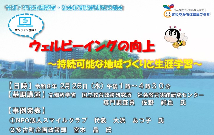 生涯学習・社会教育実践研究交流会「ウェルビーイングの向上~持続可能な地域づくりと生涯学習~」(2/26(木))