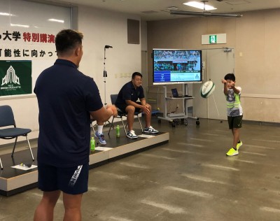 8月19日(土)NECグリーンロケッツ東葛の亀井 亮依 選手、尾又 寛汰 選手、小林 恵太 選手を講師に迎え特別講演を開催しました。