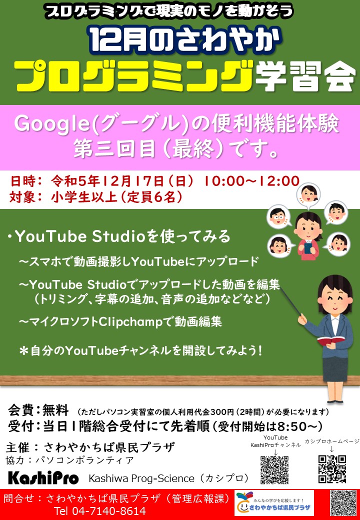 無料(ただしパソコン実習室の個人利用代金300円(2時間)が必要になります。