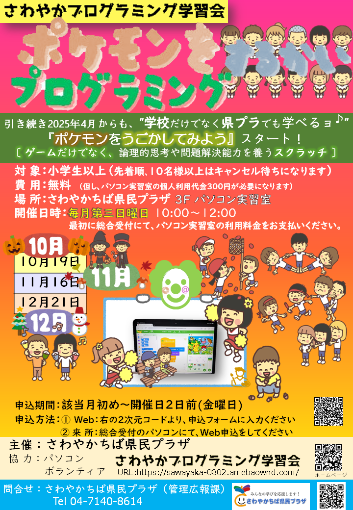 「ポケモンをプログラミングするかい」引き続き2025年7月からも、”学校だけでなく県プラでも学べるヨ”