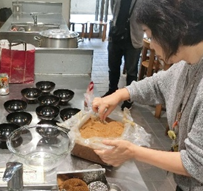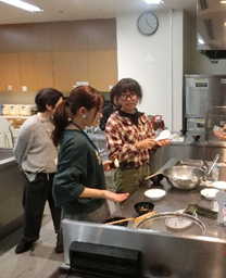 料理室でボランティアスタッフの交流会を開催しました。今年の3月に昨年度のスタッフが作ったみそで味噌玉を作り、お味噌汁にしました。今回は、自家製みそのお味噌汁と、お鍋と空き缶で炊いたご飯で各自おむすびを作って一緒に食べようという交流会です。そのため、3月のみそ作りに参加したスタッフにも声をかけ、1名が参加しました。